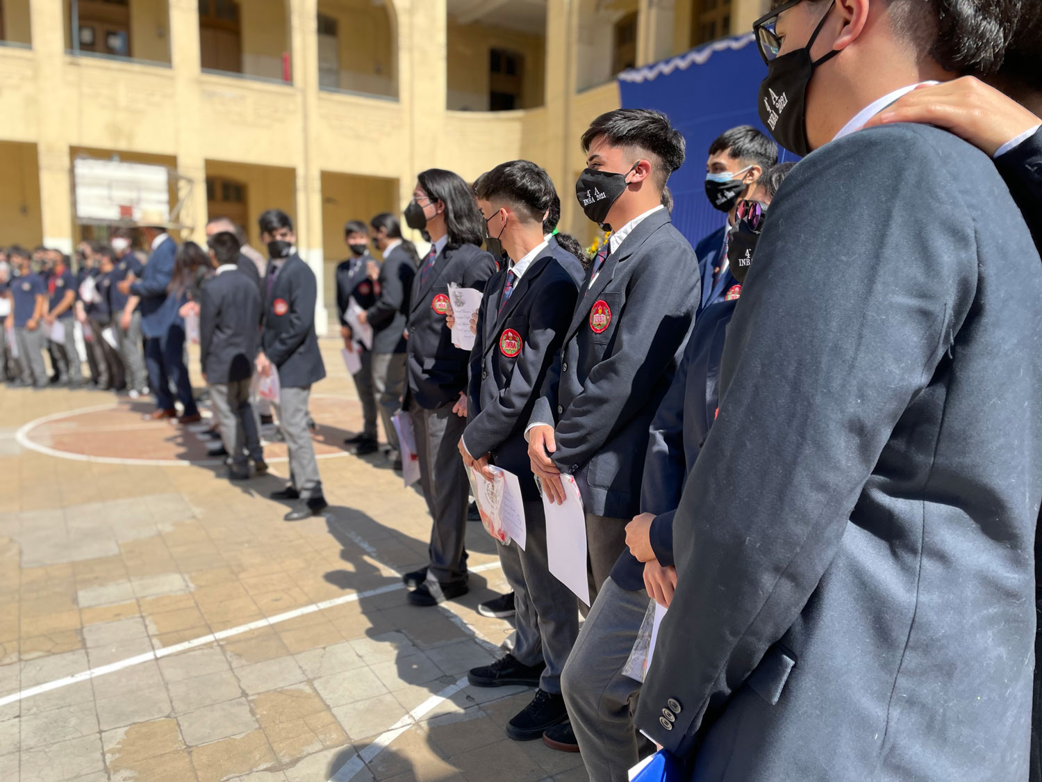 Esforzaros por alcanzar, mediante el cultivo de vuestra sensibilidad y pensamiento, y por vuestra dedicación al trabajo, la mayor perfección espiritual para honra del INTERNADO, felicidad de CHILE y progreso de la HUMANIDAD?